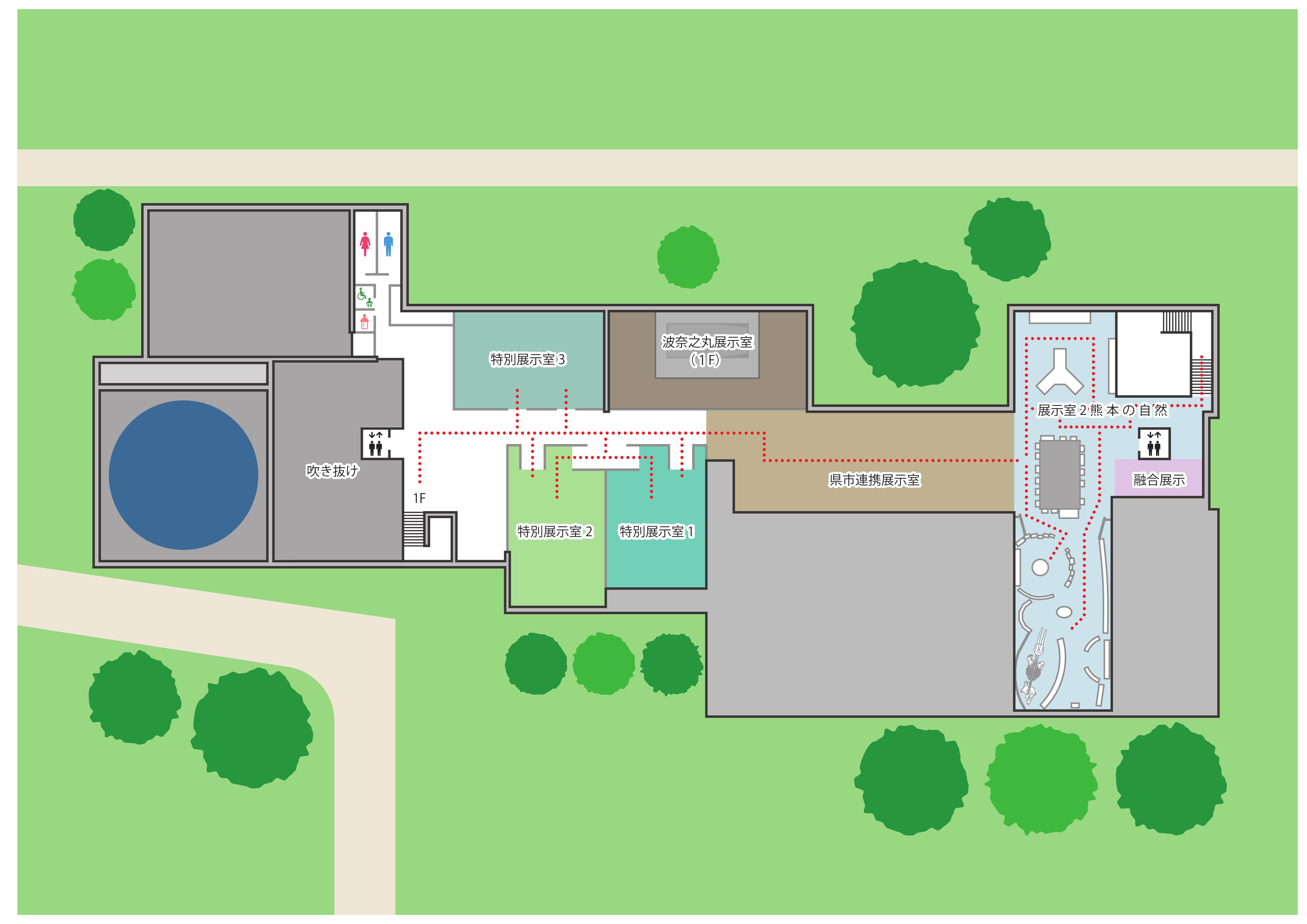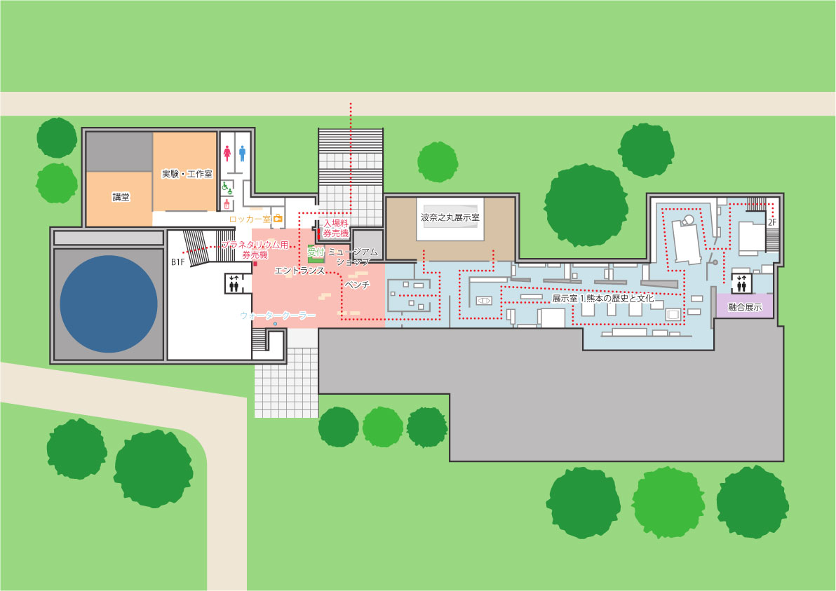 ※熊本博物館の入場口は建物の北側(旧細川刑部邸側)です。
